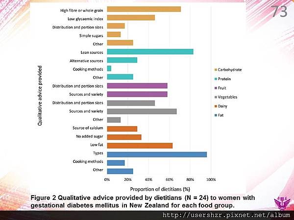 圖2營養師(N = 24)為新西蘭妊娠糖尿病婦女提供不同食物類別的定性諮詢。