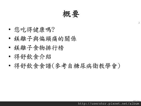 小賀營養師在此 附上當日 飲食與偏頭痛相關性的部分講義內容,