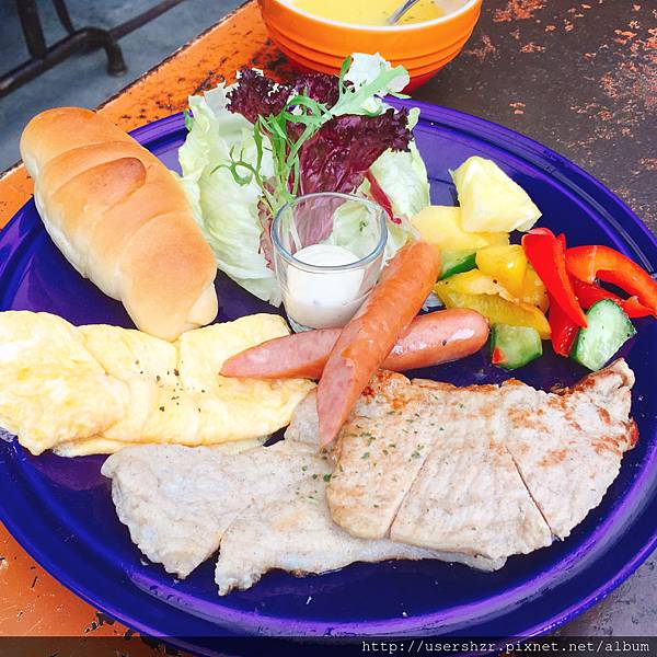 本來想要嘗試牛肉的,但是小賀超級擔心會踩雷(因為我不吃帶血的牛肉),所以只好放棄,與朋友點了豬與雞的早午餐。