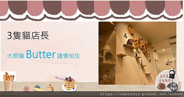 有間貓旅精品度假中心目前有3隻貓店長,是C.Y.先生從前飼主那邊領養來的,3隻毛孩雖然是同一位飼主,但卻有著各自的身體健康問題與故事,這隻爬到高處的貓店長 Butter 是排行老二,有著大大的眼睛,從我們進門開始就一直躲在櫃台默默地睜大眼睛觀察我們,縱使我們使用貓零食誘惑或是逗貓棒來試圖引起Butter的注意力,也總是敗興而歸,最後C.Y.貓先生引導Butter爬到高處,才讓牠恢復了些許的安全感。