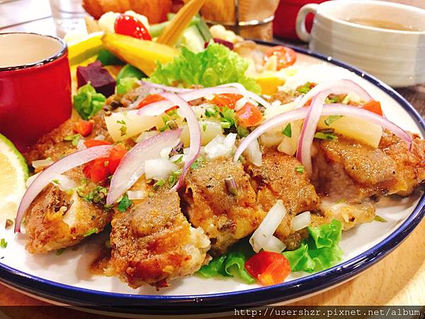 朋友夫妻檔各點一份椒麻雞與酥烤德國豬腳。雖然都是吃椒麻雞,但是同事老公的餐食與學妹的餐食在辣度上是不一樣的,