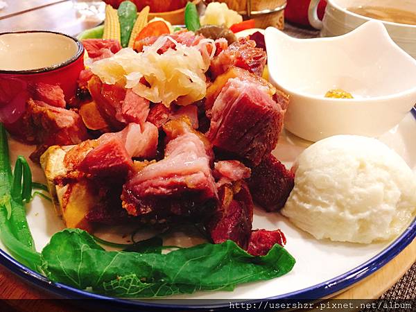 而同事吃的酥烤德國豬腳,在鹹度或是軟嫩度都很對現場我們的胃,是值得推薦的一道餐食。