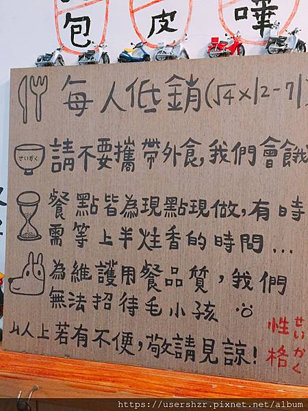 店裡有低消,如下圖公告,店家用數學公式讓消費者自己換算,算是新世代新梗吧!