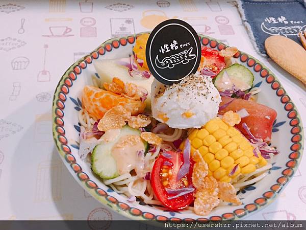 附餐 有新鮮蔬果沙拉麵(醬料可選 胡麻 或是 哇莎比)