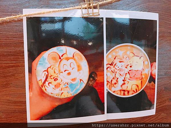 店裡的櫃台前,有呈現一些拉花的樣式的照片可供選擇,