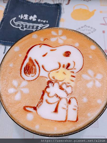 下圖為當日 友人 的拿鐵: 史努比拉花,