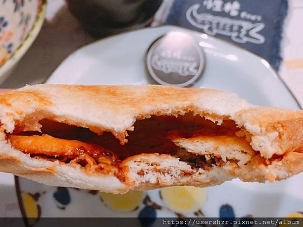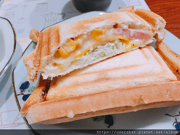 下圖為 花生可可棉花糖 熱三明治的剖面圖,