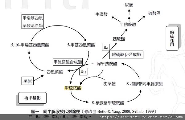 代謝途徑需要依賴『葉酸、維生素B6及維生素B12』輔助。