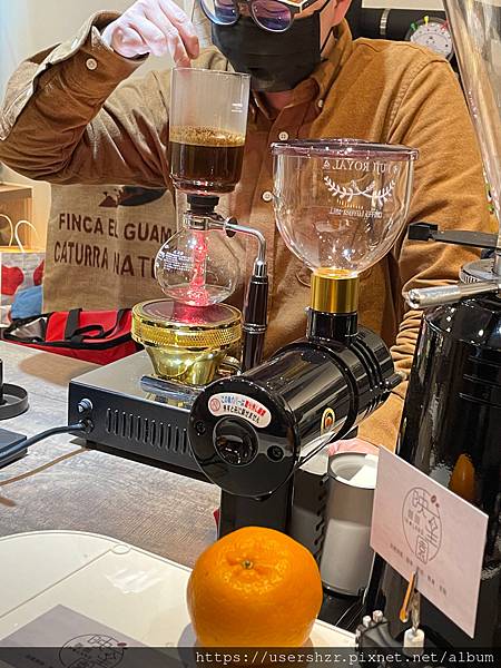 下圖是創業青年在準備虹吸式咖啡的側面照